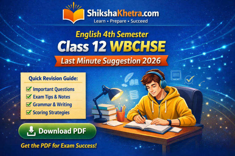 English 4th Semester Class 12 WBCHSE Last Minute Suggestion 2026 Are you appearing for the Class 12 WBCHSE English 4th Semester Examination 2026 and looking for a last-minute, exam-oriented suggestion? You’re in the right place.
